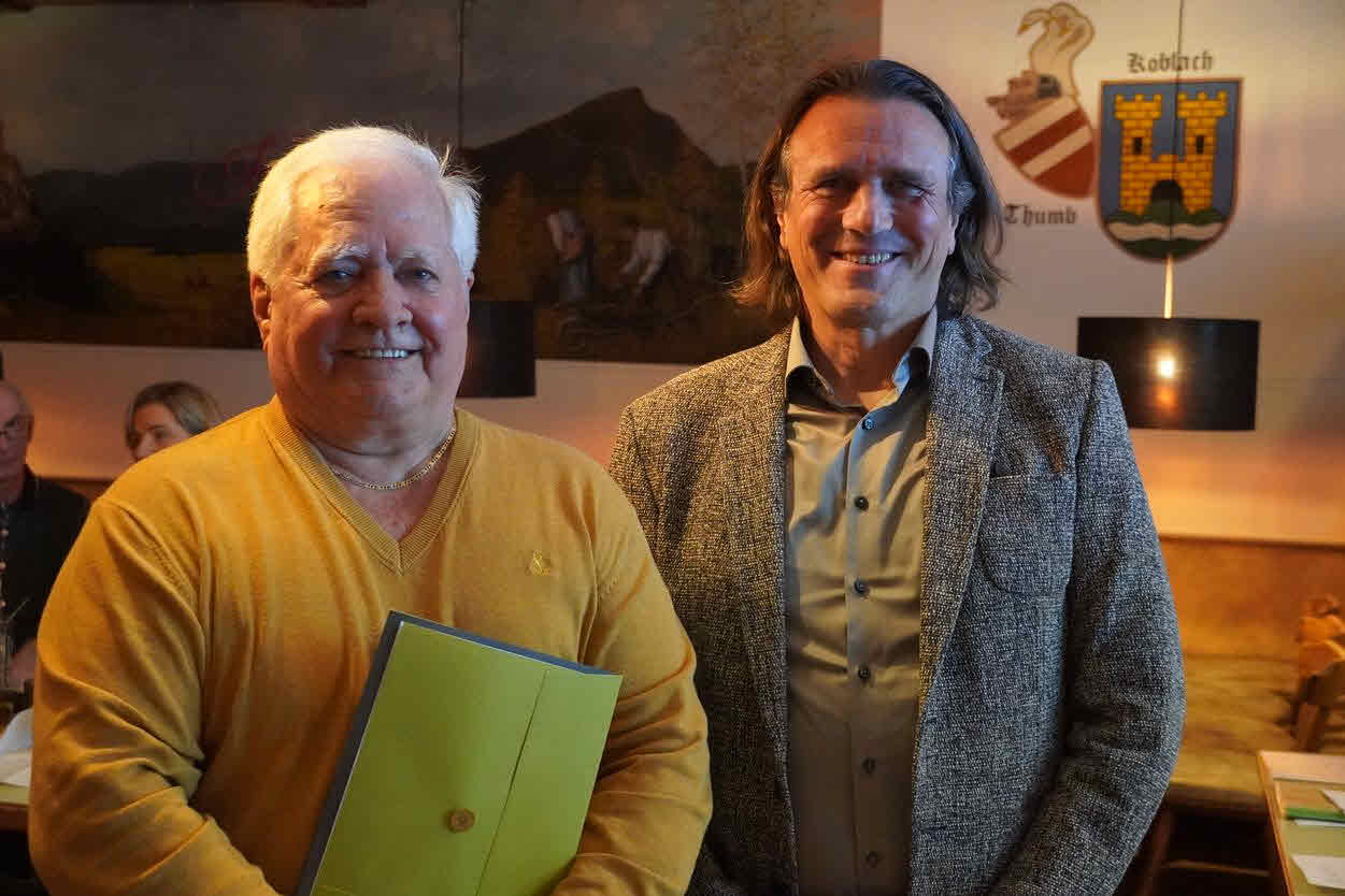 Die Sänger des Männerchors Frohsinn Koblach, Erich und Lothar Spalt, wurden am 15. Oktober 2021 im KOM Altach persönlich für 40 Jahre Chorgesang mit dem goldenen Verbandszeichen des Chorverbands Vorarlberg geehrt.