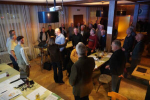 Man verließ die Bühne aber nicht ohne noch eins draufzusetzten: Mit „Gemmor no an Reiseachtl“ (Troy/Stadelmann) von Stemmeisen und Zündschnur aus dem Jahr 1977 – nach einem Arrangement von Oskar Egle erstmals von einem Männerchor vorgetragen – wurden die Konzertgäste zum gemütlichen Verweilen eingeladen, was zahlreich in Anspruch genommen wurde.